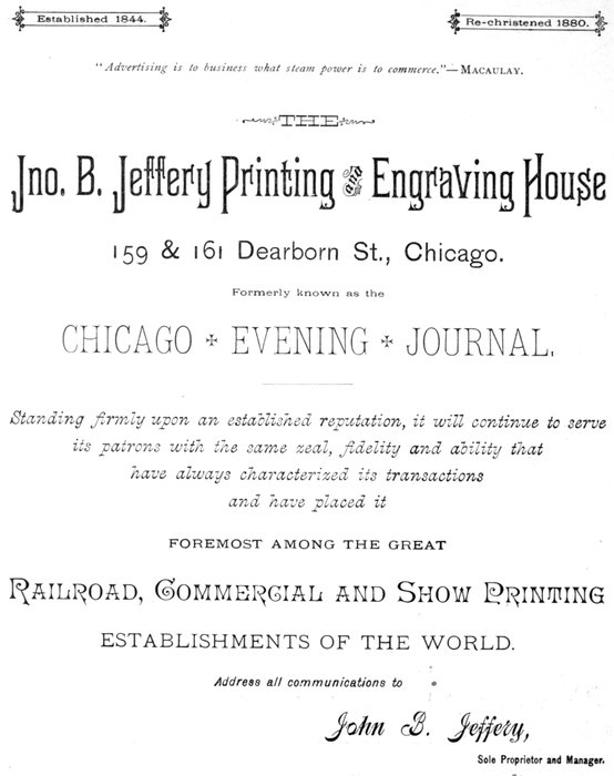 A minute later the train flew past Kensington, and then fairly started on its iron way for its first stopping place, Michigan City, better known as the City of Sand. Then came Niles, with its wonderful bridge and its fairy valley. Then Kalamazoo, the biggest village in the world, and the flower bed of creation. Then Marshall, Battle Creek and Jackson, the latter place the centre of railway industry of the beautiful State of Michigan. Then Ann Arbor, where is situated the University of the State of Michigan, and then, last, but not least, Detroit.