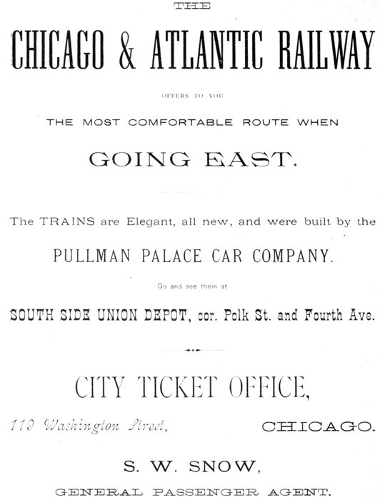 And so they bundled into the carriage, and within a few minutes the entire party was seated in one of the magnificent palace cars which are attached to the Michigan Central Limited Express.