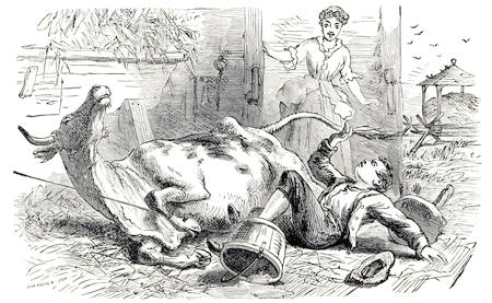 A bull’s eye was marked out on the barn door; the knife was held by the point of the blade, and flung. Uncle Isaac, when, after the first two trials, he had ascertained his distance, hit the centre of the target every time; Joe Griffin nearly as often; Charlie, Fred, and John, who had at other times practised a good deal with Uncle Isaac and each other, twice out of three times.