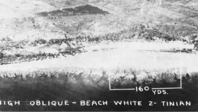 The reports on the White beaches were encouraging. Although the landing areas were very restricted, it was concluded that amphibian tractors (LVTs) and other vehicles could negotiate the reefs and get ashore, and that troops with little difficulty could clamber over the low cliffs flanking the beaches. Marines forced to disembark from boats at the reef could safely wade ashore through the shallow surf. Members of Kauffman’s UDT party confirmed the Marine findings and reported that “no mines or manmade underwater obstructions were found.”