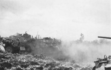 The three lead tanks broke through our wall of fire. One began to glow blood-red, turned crazily on its tracks and careened into a ditch. A second, mortally wounded, turned its machine guns on its tormentors, firing into the ditches in a last desperate effort to fight its way free. One hundred yards more and it stopped dead in its tracks. The third tried frantically to turn and then retreat, but our men closed in, literally blasting it apart.... Bazookas knocked out a fourth tank with a direct hit which killed the driver. The rest of the crew piled out of the turret screaming. The fifth tank, completely surrounded, attempted to flee. Bazookas made short work of it. Another hit set it afire and its crew was cremated.