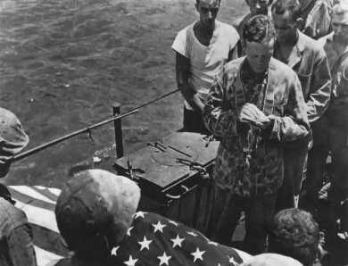 Still, “the morale of the troops committed to the Tinian operation was generally high,” then-Major Carl W. Hoffman wrote in the official history of the battle. “This fact takes on significance only when it is recalled that the Marines involved had just survived a bitter 25-day struggle and that, with only a fortnight lapse (as distinguished from a fortnight rest), they were again to assault enemy-held shores.... [Their] spirit ... was revealed more in a philosophical shrug, accompanied with a ‘here-we-go-again’ remark, than in a resentful complaint [at] being called upon again so soon.”