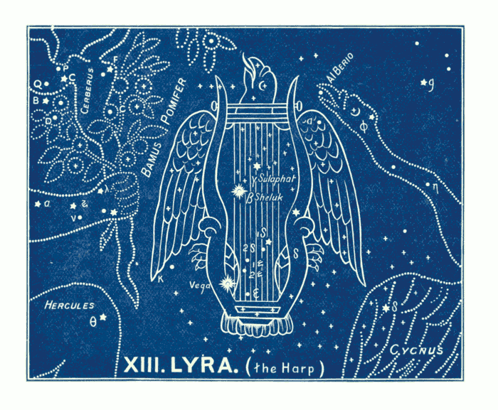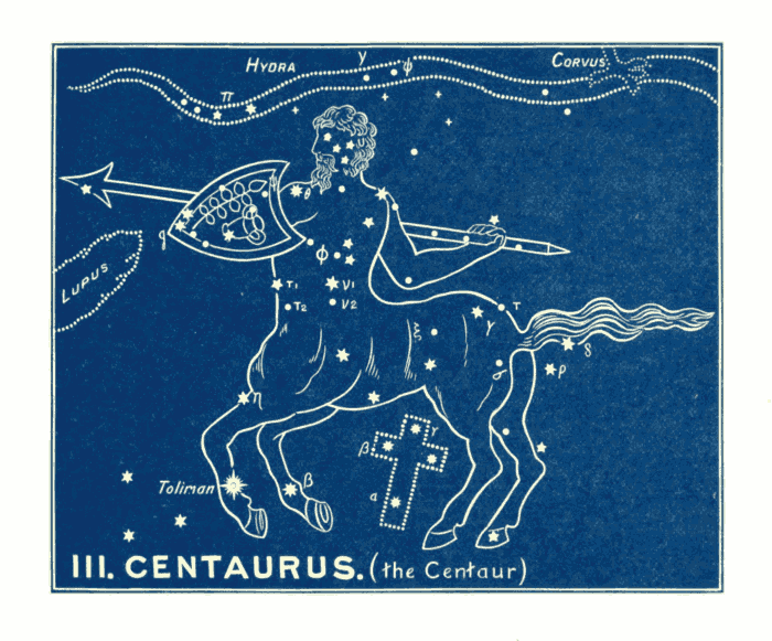 The constellation is a very brilliant one, having 54 stars, viz., one of the 1st magnitude, six of the 3rd, eleven of the 4th, etc.