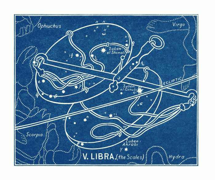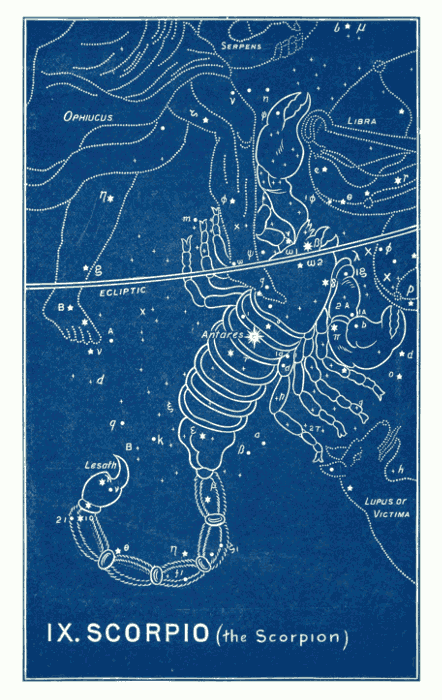 Aratus says that “some few stars of the Claws are in the (Celestial) Equator.” And Ptolemy describes the stars, now reckoned in Libra, as being in what he calls “The Constellation of the Claws.” We have reproduced them so that his description of them may be readily traced. He speaks of—