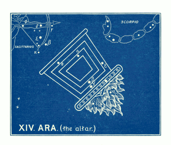 This is how the stars formerly in the Sign of the (Circular) Altar, came to be reckoned in the Claws [pg 204] of the Scorpion; and this is how the circular scales of Libra came to be substituted for the ancient Circular Altar.
