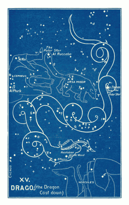 Most commentators agree that the constellation of “Draco,” or the Dragon (between the Great and Little Bear), is referred to in Job xxvi. 13: “By His Spirit He hath garnished the heavens; His hand hath formed the crooked serpent (r.v. swift. Marg. fleeing or gliding. See Is. xxvii. 1; xliii. 14).” This word “garnished” is peculiar. The r.v. puts in the margin, beauty. In Ps. xvi. 6, it is rendered goodly. “I have a goodly heritage.” In Dan. iv. 2, it is rendered, “I thought [pg 009] it good to show,” referring to “the signs and wonders” with which God had visited Nebuchadnezzar. It appears from this that God “thought it good to show” by these signs written in the heavens the wonders of His purposes and counsels, and it was by His Spirit that He made it known; it was His hand that coiled (חוּל) the crooked serpent among the stars of heaven.