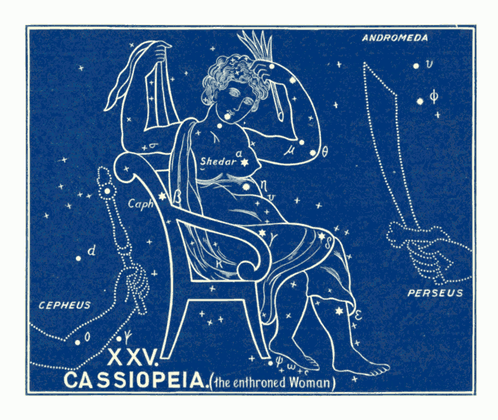 They occur in Job ix. 9: “Which maketh Arcturus (r.v. the Bear), Orion, and Pleiades, and the chambers of the south.” (Marg., Heb., Ash, Cesil, and Cimah.)