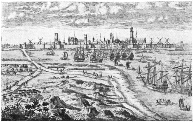 This vast plain was formerly a sea-gulf, and as late as the 11th century, was often raided by the "drakkers" of the Scandinavian pirates. In the Middle-Ages, the gulf gradually filled up with sand. This vast polder is almost entirely below sea-level at high tide, and is each day invaded by the waves.