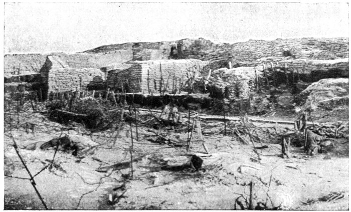 The spongy nature of the soil makes it impossible to excavate to any depth, nor was there any high ground to mask the defence-works and batteries of artillery.