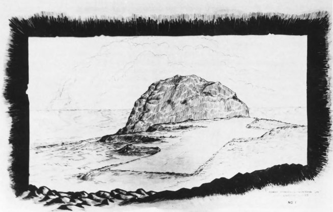 “Turkey Knob,” the outcropping which anchored the positions of the Japanese 2d Mixed Brigade against the advance of the 4th Marine Division for many days, was sketched by Cpl Daniel L. Winsor, Jr., USMCR, S-2 Section, 25th Marines.