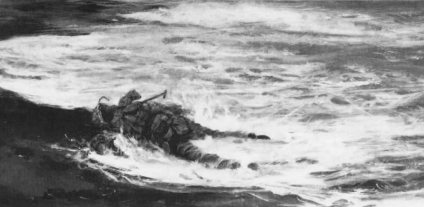 The Marines and sailors were anxious to get their first glimpse of the objective. Correspondent John P. Marquand, the Pulitzer Prize-winning writer, recorded his own first impressions of Iwo: “Its silhouette was like a sea monster, with the little dead volcano for the head, and the beach area for the neck, and all the rest of it, with its scrubby brown cliffs for the body.” Lieutenant David N. Susskind, USNR, wrote down his initial thoughts from the bridge of the troopship Mellette: “Iwo Jima was a rude, ugly sight.... Only a geologist could look at it and not be repelled.” As described in a subsequent letter home by Navy Lieutenant Michael F. Keleher, a surgeon in the 25th Marines: