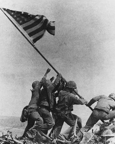 President Roosevelt, long a master of public opinion, managed to keep the lid on the outcry by emphasizing the sacrifice of the troops as epitomized by the Joe Rosenthal photograph of the second Suribachi flag-raising. The photograph was already widely renowned. FDR made it the official logo of the Seventh War Bond Drive and demanded the six flag-raisers be reassigned home to enhance popular morale. Regrettably, three of the six men had already been killed in subsequent fighting in the drive north on Iwo Jima.