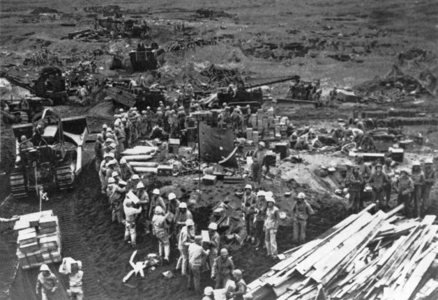 The 2d Separate Engineer Battalion and the 62d Naval Construction Battalion (Seabees) repaired and extended the captured runways. In short order, an entire Seabee brigade moved ashore. Marines returning to the beaches from the northern highlands could hardly recognize the place they had first seen on D-day. There were now more than 80,000 Americans on the small island. Seabees had bulldozed a two-lane road up to the top of Suribachi.