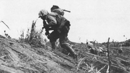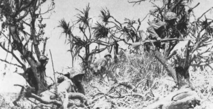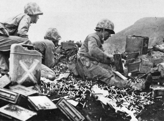 The infantry, heavily laden, found its own “foot-mobility” severely restricted. In the words of Corporal Edward Hartman, a rifleman with the 4th Marine Division: “the sand was so soft it was like trying to run in loose coffee grounds.” From the 28th Marines came this early, laconic report: “Resistance moderate, terrain awful.”