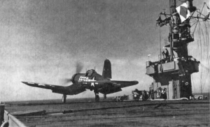 The choreography of the landing continued to develop. Iwo Jima would represent the pinnacle of forcible amphibious assault against a heavily fortified shore, a complex art mastered painstakingly by the Fifth Fleet over many campaigns. Seventh Air Force Martin B-24 Liberator bombers flew in from the Marianas to strike the smoking island. Rocket ships moved in to saturate nearshore targets. Then it was time for the fighter and attack squadrons from Mitscher’s Task Force 58 to contribute. The Navy pilots showed their skills at bombing and strafing, but the troops naturally cheered the most at the appearance of F4U Corsairs flown by Marine Fighter Squadrons 124 and 213 led by Lieutenant Colonel William A. Millington from the fleet carrier Essex. Colonel Vernon E. Megee, in his shipboard capacity as air officer for General Smith’s Expeditionary Troops staff, had urged Millington to put on a special show for the troops in the assault waves. “Drag your bellies on the beach,” he told Millington. The Marine fighters made an impressive approach parallel to the island, then virtually did Megee’s bidding, streaking low over the beaches, strafing furiously. The geography of the Pacific War since Bougainville had kept many of the ground Marines separated from their own air support, which had been operating in areas other than where they had been fighting, most notably the Central Pacific. “It was the first time a lot of them had ever seen a Marine fighter plane,” said Megee. The troops were not disappointed.
