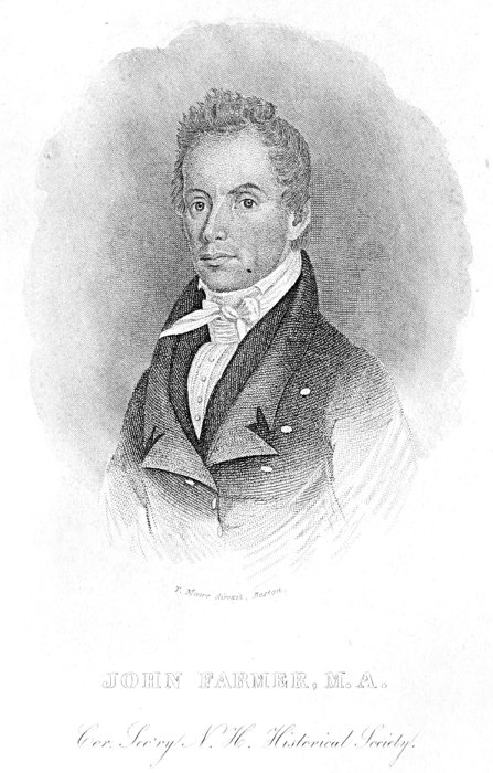 John Farmer, who was the most distinguished Genealogist and Antiquary of this country, was born at Chelmsford, Ms., June 12, 1789.[1] He was the eldest son of John Farmer, who married, January 24, 1788, Lydia Richardson, daughter of Josiah Richardson of Chelmsford, Ms. His father was the son of Oliver Farmer, born July 31, 1728, who was the son of Edward, born at Ansley, Warwickshire, England, who emigrated to this country about the year 1670, and settled at Billerica, Ms.[2]