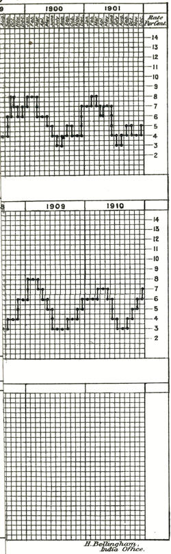 [126] The Bengal Bank Rate was at 7 or 8 per cent from November 28, 1912, to April 17, 1913, and the Bombay Bank Rate at no less than 8 per cent from December 27, 1912, to April 8, 1913.