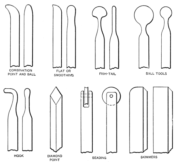 Fig. 11. Hand Tools of Various Forms used in Spinning