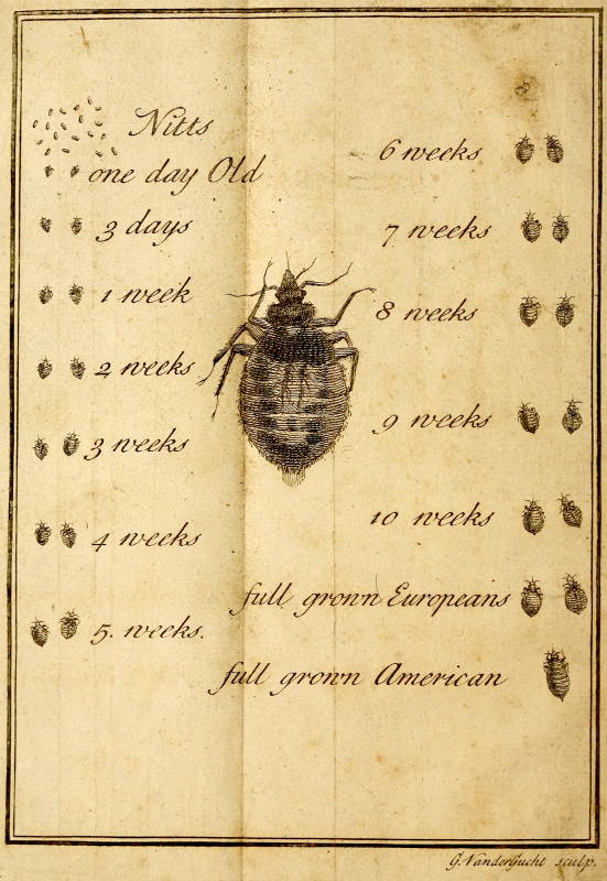 Having gain’d this great Point, I then went on briskly, and destroyed Buggs and Nits in all Beds and Furniture wherever I came: But yet Young Ones from behind Wainscot and out of Walls would sometimes afterwards appear, get to the Beds for better quarters and food, and become troublesome.