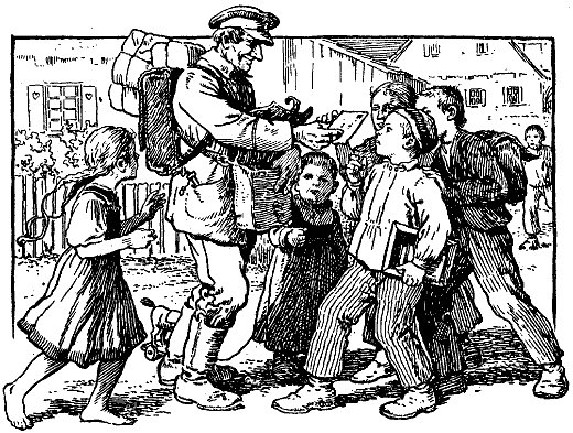 »Nä,« murrte Heine Peterle, »fiedeln ist besser, da macht man keine Kleckse.« Und schwupp, drehte er sich um und lief dem Dorfe zu. Erst als er dort war, fiel's ihm ein, daß er nicht einmal Abschied genommen hatte.