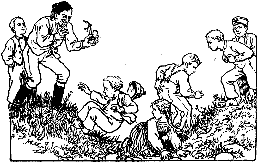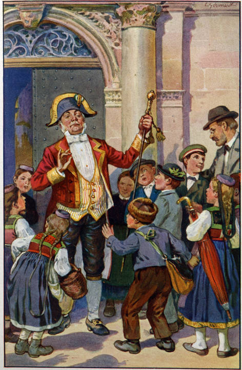 Da drehten sich urplötzlich alle Buben und Mädel um und starrten den Griesgram namenlos verwundert an. Der wurde ordentlich verlegen und murrte: »Das sind ja unglaublich ungezogene Rangen.«