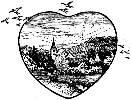 So unter Geschwätz und Geschrei, Necken und Lachen hatte Traumfriede seine Abschiedsbesuche gemacht, und die Zeit, da die Bäuerinnen die Abendsuppe auftischten, war gekommen. Friede nahm am Dorfbrunnen Abschied von seinen Gefährten; ein wenig kurz und eilig ging es dabei zu, denn Friede war das Herz schwer, und er konnte nicht viel sagen. Die andern aber hatten sich alle vorgenommen, morgen vor Tau und Tag aufzustehen und dem Freund noch einmal Lebewohl14 zu sagen. Kaspar auf dem Berge, der Wirt zur himmelblauen Ente, wollte am nächsten Morgen um vier Uhr die Stadtfahrt antreten und Friede mitnehmen samt seinem recht bescheidenen Köfferlein.