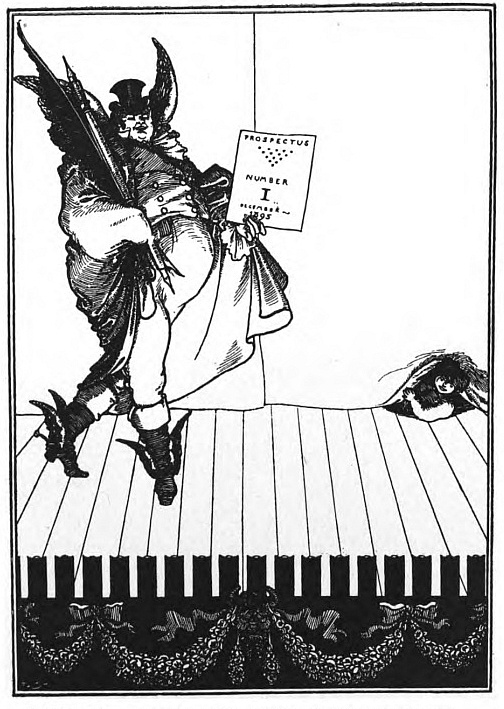 It was in the summer of 1895 that I first met Aubrey Beardsley. A publisher had asked me to form and edit a new kind of magazine, which was to appeal to the public equally in its letterpress and its illustrations: need I say that I am defining the "Savoy"? It was, I admit, to have been something of a rival to the "Yellow Book," which had by that time ceased to mark a movement, and had come to be little more than a publisher's magazine. I forget exactly when the expulsion of Beardsley from the "Yellow Book" had occurred; it had been sufficiently recent, at all events, to make Beardsley singularly ready to fall in with my project when I went to him and asked him to devote himself to illustrating my quarterly. He was supposed, just then, to be dying; and as I entered the room, and saw him lying out on a couch, horribly white, I wondered if I had come too late. He was full of ideas, full of enthusiasm, and I think it was then that he suggested the name "Savoy," finally adopted after endless changes and uncertainties.