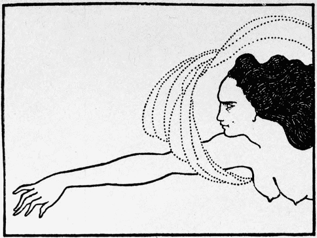 At times he attains pure beauty, has the unimpaired vision; in the best of the "Salomé" (Ills. 15-29) designs here and there afterwards. From the first it is a diabolic beauty, but it is not yet divided against itself. The consciousness of sin is always there, but it is sin first transfigured by beauty, and then disclosed by beauty; sin, conscious of itself, of its inability to escape itself, and showing in its ugliness the law it has broken. His world is a world of phantoms, in which the desire of the perfecting of mortal sensations, a desire of infinity, has over-passed mortal limits, and poised them, so faint, so quivering, so passionate for flight, in a hopeless and strenuous immobility. They have the sensitiveness of the spirit, and that bodily sensitiveness which wastes their veins and imprisons them in the attitude of their luxurious meditation. They are too thoughtful to be ever really simple, or really absorbed by either flesh or spirit. They have nothing of what is "healthy" or merely "animal" in their downward course towards repentance; no overwhelming passion hurries them beyond themselves; they do not capitulate to an open assault of the enemy of souls. It is the soul in them that sins, sorrowfully, without reluctance, inevitably. Their bodies are faint and eager with wantonness; they desire more pleasure than there is in the world, fiercer and more exquisite pains, a more intolerable suspense. They have put off the common burdens of humanity, and put on that loneliness which is the rest of saints and the unrest of those who have sinned with the intellect. They are a little lower than the angels, and they walk between these and the fallen angels, without part or lot in the world.