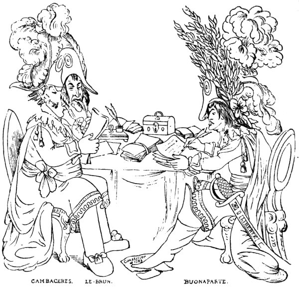 | NAPOLEON TAKES THE LEAD—SIÈYES AND DUCOS ARE DEPOSED—CAMBACÉRÈS AND LEBRUN NAMED SECOND AND THIRD CONSULS—NAPOLEON’S LETTER TO GEORGE THE THIRD—REPLY TO SAME | 123 |