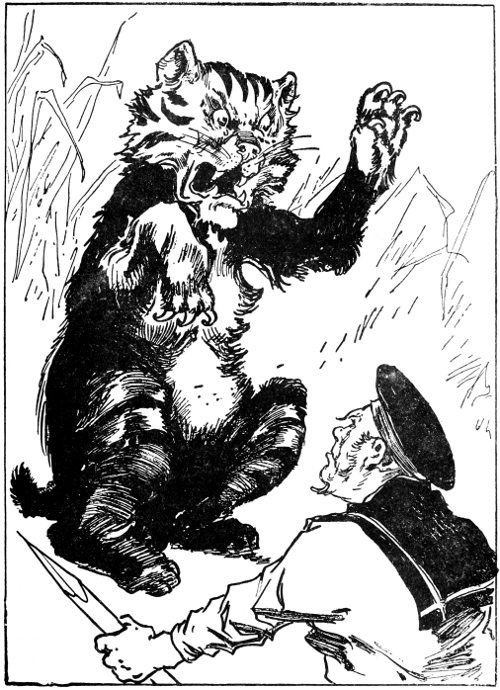 “Haw, haw, haw!” laughed someone behind him, in a big voice; “that’s the proper spirit, my lad! I’m glad I’ve met you; shake hands.”