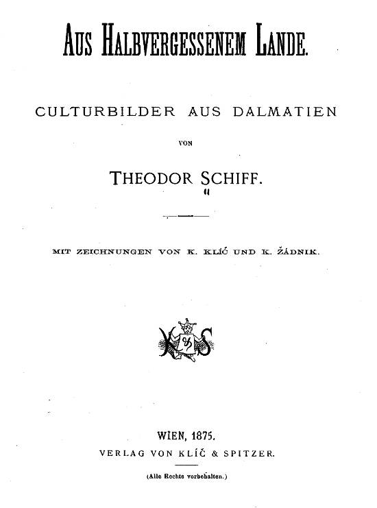 Was die Dalmatiner von uns Deutschen sagen und wie sie von uns denken, das lässt sich nicht in wenigen Worten wiedergeben, hauptsächlich schon aus dem Grunde nicht, weil unter dem Worte »Dalmatiner« zwei ganz verschiedene Nationalitäten zu verstehen sind, die einander in der Sprache gar nicht gleichen, während ihre Sitten nur Weniges mit einander gemein haben. In den Küstenstädten Nord- und Mittel-Dalmatiens, in Zara, Sebenico, Spalato, Almissa und Makarska ist die sogenannte bessere Classe, zu welcher sämmtliche »Conti«, die besser gestellte Mittelclasse und verhältnissmässig nur wenige Gewerbetreibende gehören, grösstentheils italienischer Herkunft; man spricht in der Familie italienisch mit venetianischem Dialekt und hat venetianische Sitten und Gebräuche mit einer merkwürdigen Zähigkeit bis auf den heutigen Tag festgehalten. Im Inneren des Landes hingegen, sowie in den südlicher gelegenen Städten Ragusa, Cattaro, Castelnuovo, dann auf den Inseln, herrschen slavische Sprache, Sitten, Gebräuche und Familien-Namen vor. Die Bewohner des inneren Gebirgslandes sind ausschliesslich Slaven.