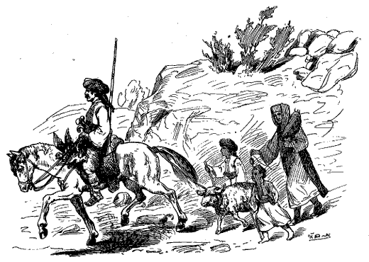 »Wie das aber Alles ausgebreitet lag, sagt der Ive: »Weisst Du noch, Gospoja, wie wir alle haben bei offenem Fenster schwören müssen? Ich habe[14] damals gar gut gesehen, wer blass geworden ist, als der Conte Nico die Fenster aufmachte. Darum habe ich seit der Zeit dem Joso aufgepasst, und jede Nacht ging ich um Lovrett herum seit dieser Zeit, bis ich einmal ein Licht sah unter den Feigenbäumen vor dem Hause. Da wusste ich, dass ein Schatz in der Erde sein musste, denn das Licht verschwand, sobald ich näher kam. Und als ich heute Nacht wieder um Lovrett herumschlich, da sah ich den Joso mit der Schaufel aus dem Hause treten und gegen die Feigenbäume gehen. Da rief ich schnell meinen Kameraden und auch die drei Rondari, die wir begegneten, und als wir nach Lovrett kamen, da hatte gerade der Joso das ganze Silber ausgegraben und wollte es in's Haus tragen. Wir aber fielen über ihn her und nahmen es ihm weg. Hier hast Du Dein Silber, Gospoja, und da ist noch etwas.« Und wie der Ive das gesagt hatte, griff er in die Torba und zog den Kopf des Joso hervor, den sie ihm abgeschnitten hatten – –«