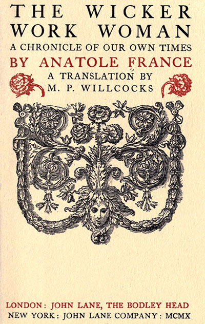 In his study M. Bergeret, professor of literature at the University, was preparing his lesson on the eighth book of the Æneid to the shrill mechanical accompaniment of the piano, on which, close by, his daughters were practising a difficult exercise. M. Bergeret’s room possessed only one window, but this was a large one, and filled up one whole side. It admitted, however, more draught than light, for the sashes were ill-fitting and the panes darkened by a high contiguous wall. M. Bergeret’s table, pushed close against this window, caught the dismal rays of niggard daylight that filtered through. As a matter of fact this study, where the professor polished and repolished his fine, scholarly phrases, was nothing more than a shapeless cranny, or rather a double recess, behind the framework of the main staircase which, spreading out most inconsiderately in a great curve towards4 the window, left only room on either side for two useless, churlish corners. Trammelled by this monstrous, green-papered paunch of masonry, M. Bergeret had with difficulty discovered in his cantankerous study—a geometrical abortion as well as an æsthetic abomination—a scanty flat surface where he could stack his books along the deal shelves, upon which yellow rows of Teubner classics were plunged in never-lifted gloom. M. Bergeret himself used to sit squeezed close up against the window, writing in a cold, chilly style that owed much to the bleakness of the atmosphere in which he worked. Whenever he found his papers neither torn nor topsy-turvy and his pens not gaping cross-nibbed, he considered himself a lucky man! For such was the usual result of a visit to the study from Madame Bergeret or her daughters, where they came to write up the laundry list or the household accounts. Here, too, stood the dressmaker’s dummy, on which Madame Bergeret used to drape the skirts she cut out at home. There, bolt upright, over against the learned editions of Catullus and Petronius, stood, like a symbol of the wedded state, this wicker-work woman.