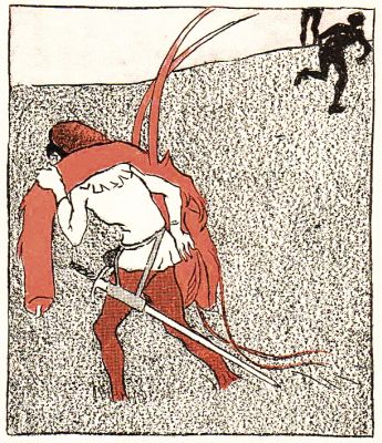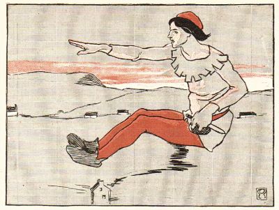 The sun was flaming above the tree-tops on the distant shore, and the warm morning breeze fluttered the hair of his tousled curly head.