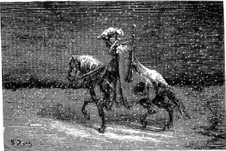 Je continuai mon voyage, jusqu'à ce que la nuit et les ténèbres me surprissent. Aucun signe, aucun bruit, qui m'indiquât la présence d'un village: le pays tout entier était enseveli sous la neige, et je ne savais pas la route.