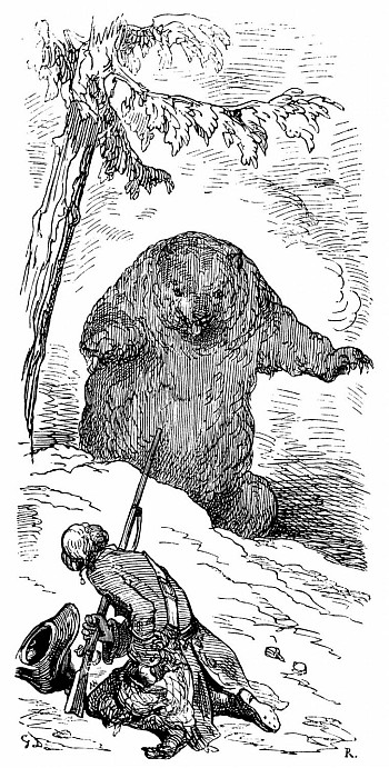 A peine avais-je posé le pied sur la terre ferme, que je me vis assailli par un gros ours.