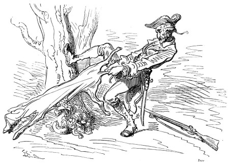 Et je l'accueillis avec une si belle décharge, qu'il perdit du coup l'envie de plus jamais monter aux arbres.