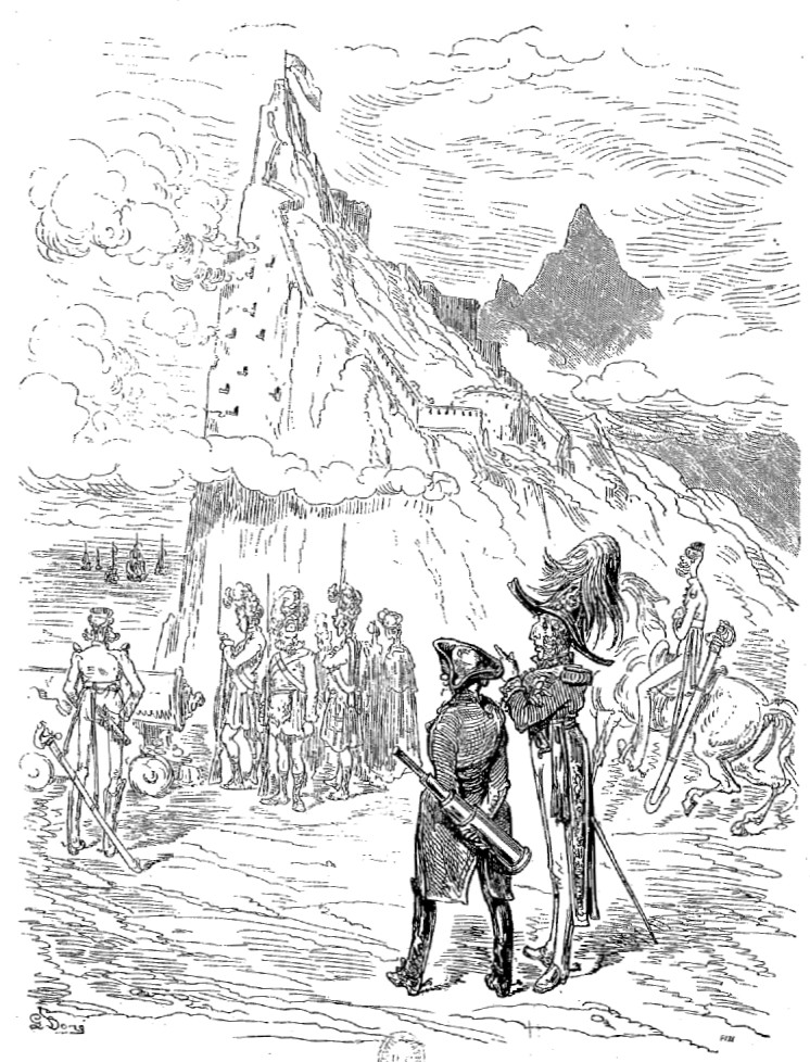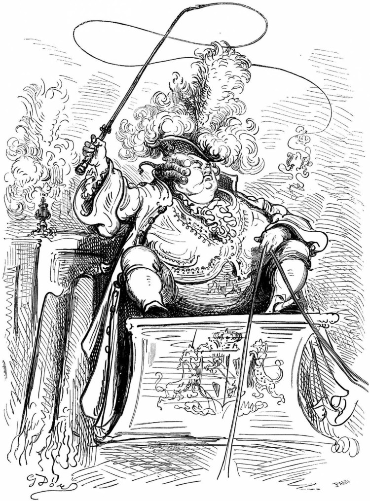 Les Aventures du baron de Münchhausen jouissent en Allemagne d'une célébrité populaire qu'elles ne sauraient manquer, nous l'espérons du moins, d'acquérir bientôt en France, malgré leur forte saveur germanique, et peut-être à cause même de cela: le génie des peuples se révèle surtout dans la plaisanterie. Comme les œuvres sérieuses chez toutes les nations ont pour but la recherche du beau qui est un de sa nature, elles se ressemblent nécessairement davantage, et portent moins nettement imprimé le cachet de l'individualité ethnographique. Le comique, au contraire, consistant dans une déviation plus ou moins accentuée du modèle idéal, offre une multiplicité singulière de ressources: car il y a mille façons de ne pas se conformer à l'archétype. La gaieté française n'a aucun rapport avec l'humour britannique; le witz allemand diffère de la bouffonnerie italienne, et le caractère de chaque nationalité s'y montre dans son libre épanchement. Le baron de Münchhausen, en dépit de ses hâbleries incroyables, n'a nul lien de parenté avec le baron de Crac, autre illustre menteur. La blague française, qu'on nous pardonne d'employer ce mot, lance sa fusée, pétille et mousse comme du vin de Champagne, mais bientôt elle s'éteint, laissant à peine au tond de la coupe deux ou trois perles de liqueur. Cela serait trop léger pour des gosiers allemands habitués aux fortes bières et aux après vins du Rhin: il leur faut quelque chose de plus substantiel, de plus épais, de plus capiteux. La plaisanterie, pour faire impression sur ces cerveaux pleins d'abstractions, de rêves et de fumée, a besoin de se faire un peu lourde; il faut qu'elle insiste, qu'elle revienne à la charge, et ne se contente pas de demi-mots qui ne seraient pas compris. Le point de départ de la plaisanterie allemande est cherché, peu naturel, d'une bizarrerie compliquée, et demande beaucoup d'explications préalables assez laborieuses; mais la chose une fois posée, vous entrez dans un monde étrange, grimaçant, fantasque, d'une originalité chimérique dont vous n'aviez aucune idée. C'est la logique de l'absurde poursuivie avec une outrance qui ne recule devant rien. Des détails d'une vérité étonnante, des raisons de l'ingéniosité la plus subtile, de attestations scientifiques d'un sérieux parfait servent à rendre probable l'impossible. Sans doute, on n'arrive pas à croire les récits du baron de Münchhausen, mais à peine a-t-on entendu deux ou trois de ses aventures de terre ou de mer, qu'on se laisse aller à la candeur honnête et minutieuse de ce style, qui ne serait pas autre, s'il avait à raconter une histoire vraie. Les inventions les plus monstrueusement extravagantes prennent un certain air de vraisemblance, déduites avec cette tranquillité naïve et cet aplomb parfait. La connexion intime de ces mensonges qui s'enchaînent si naturellement les uns aux autres finit par détruire chez le lecteur le sentiment de la réalité, et l'harmonie du faux y est poussée si loin qu'elle produit une illusion relative semblable à celle que font éprouver les voyages de Gulliver à Lilliput et à Brobdignag, ou bien encore l'Histoire véritable de Lucien, type antique de ces récits fabuleux tant de fois imités depuis. Ici, le crayon de Gustave Doré augmente encore le prestige; personne mieux que cet artiste, qui semble avoir cet œil visionnaire dont parle Victor Hugo dans sa pièce à Albert Durer, ne sait faire vivre d'une vie mystérieuse et profonde les chimères, les rêves, les cauchemars, les formes insaisissables noyées de lumière et d'ombre, les silhouettes drôlatiquement caricaturales, et tous les monstres de la fantaisie; il a commenté les aventures du baron de Münchhausen de dessins qui semblent les planches d'un voyage de circumnavigation par leur fidélité caractéristique et leur exotique bizarrerie. On dirait que, peintre de l'expédition, il a croqué d'après nature tout ce que décrit le facétieux baron allemand, et le texte en acquiert une valeur de bouffonnerie froide plus germanique encore.