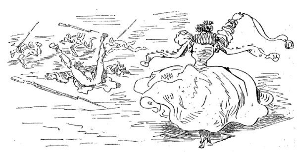 Quand il revint à lui, il demanda qu'on retirât le fromage de dessous ses pieds; on vérifia, et on reconnut qu'il avait parfaitement raison: cette île n'était, comme je viens de vous le dire, qu'un énorme fromage. La plupart des habitants s'en nourrissaient; les parties mangées pendant le jour étaient remplacées pendant la nuit. Nous vîmes dans cette île une grande quantité de vignes chargées de grosses grappes, lesquelles, lorsqu'on les pressait, ne donnaient que du lait. Les insulaires étaient sveltes et beaux, la plupart avaient neuf pieds de haut; ils avaient trois jambes et un bras, et les adultes portaient sur le front une corne dont ils se servaient avec une adresse remarquable. Ils font des courses sur la surface du lait, et s'y promènent sans y enfoncer avec autant d'assurance que nous sur une pelouse.
