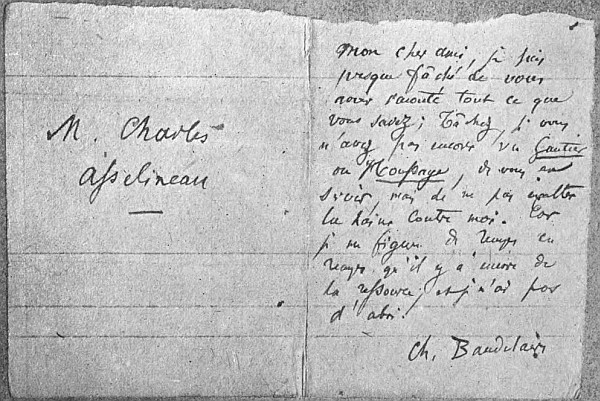 | IX. | Autograph Letter of Baudelaire to Charles Asselineau, 1865. |