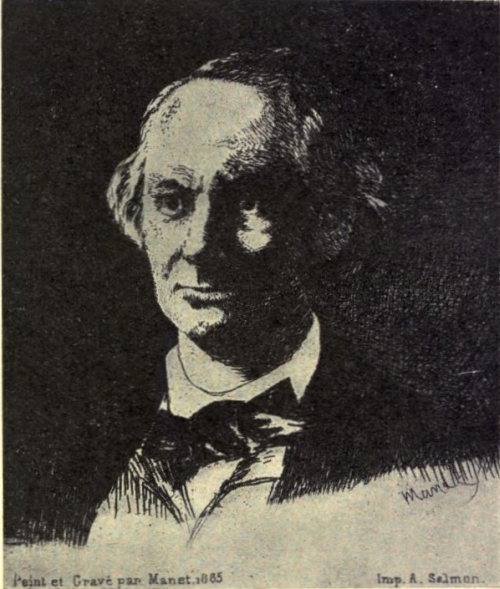 The Manet portrait of Charles Baudelaire, dated 1862, is exquisite, ironical, subtle, enigmatical, astonishing; He has arrested the head and shoulders of the poet in an instant's vision; the outlines are definite, clear, severe, and simple. One sees the eager head thrust forward, as if the man were actually walking; the fine and delicate nose, voluptuously dilated in the nostrils, seems to breathe in vague perfumes; the mouth, half-seen, has a touch of his malicious irony; the right eye shines vividly in a fixed glance, those eyes that had the colour of Spanish tobacco. Over the long, waving hair, that seems to be swept backward by the wind, is placed, with unerring skill, at the exact angle, that top-hat that Baudelaire had to have expressly made to fit the size of his head. Around his long neck is just seen the white soft collar of his shirt, with a twisted tie in front. In this picture one sees the inspired poet, with distinct touches of this strong piece of thinking flesh and blood. And Manet indicates, I think, that glimpse of the soul which one needs in a perfect likeness.