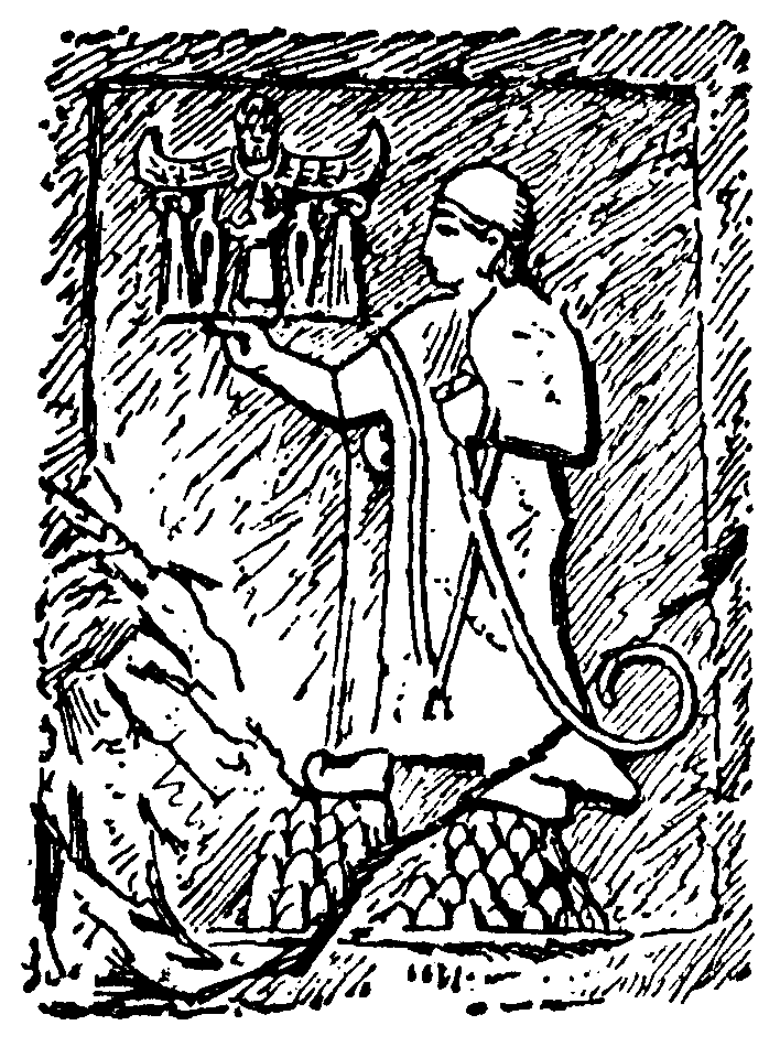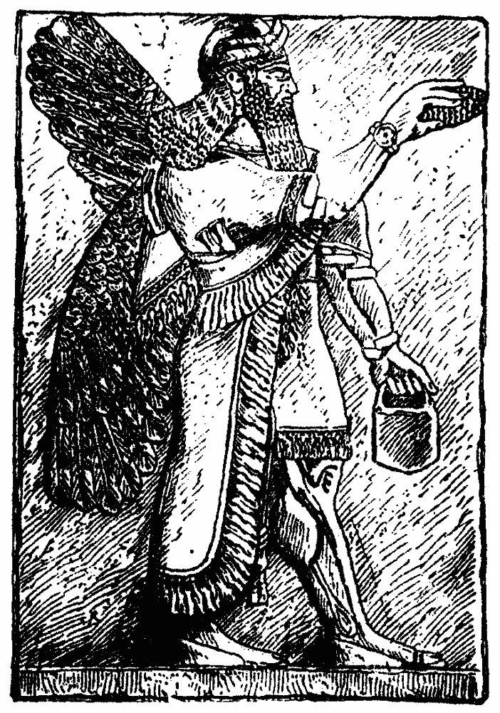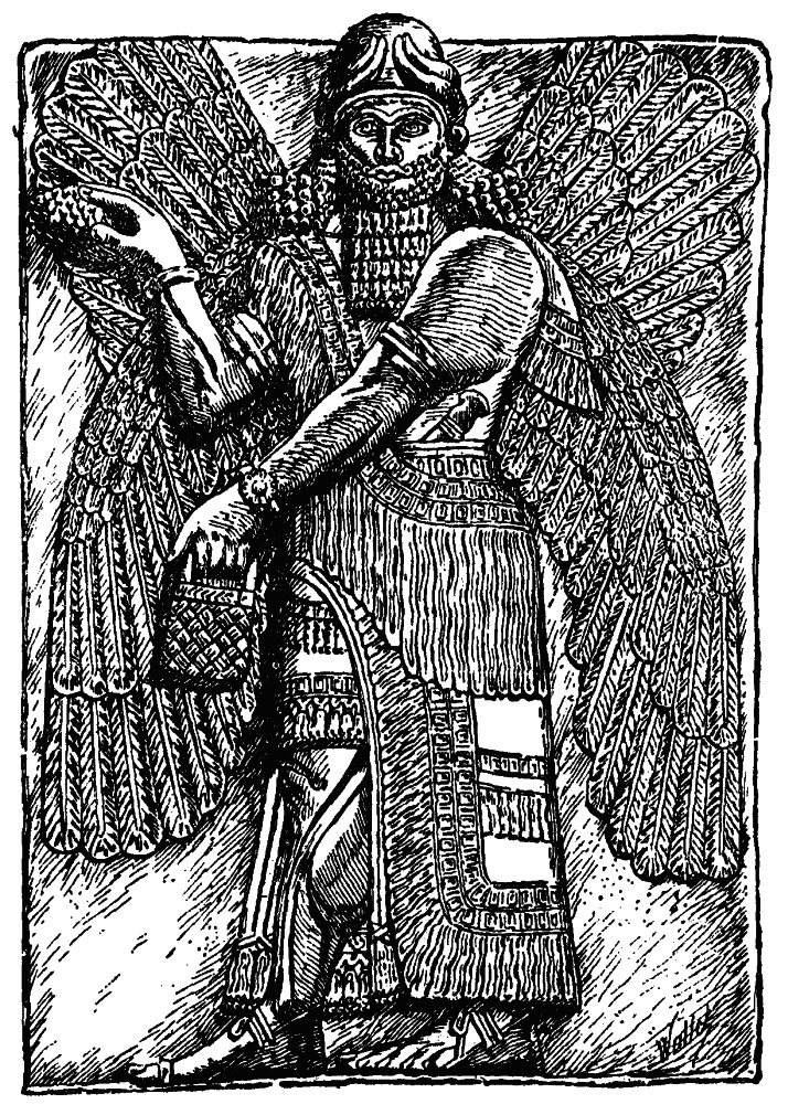 [61] The existence of a supreme god, Ilu, among the Assyrian deities is not proved, though assumed by M. Babelon, who supposes that the winged figure on the Assyrian bas-reliefs is Ilu.