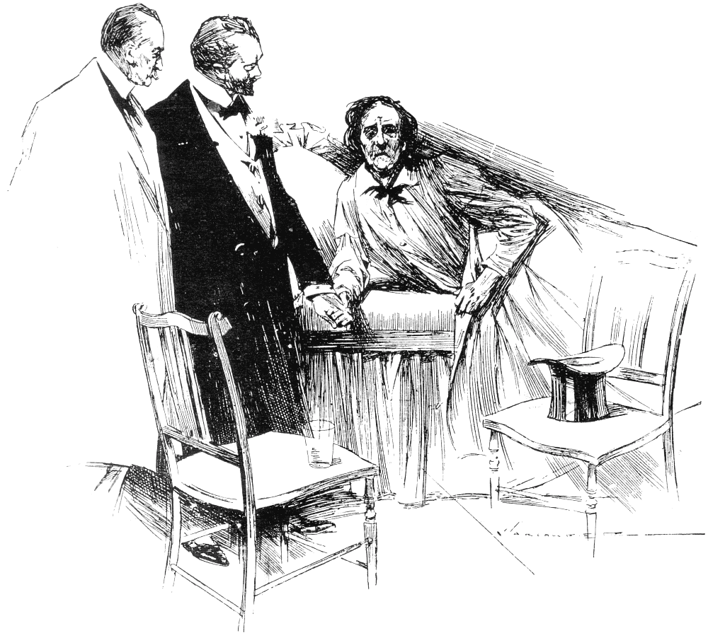 "Only this gentleman must have been putting a sovereign into my pocket, and I insist—oh! I insist——"