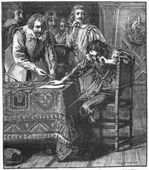 CHARLES SIGNING THE COMMISSION OF ASSENT TO STRAFFORD'S ATTAINDER. (See p. 603.)