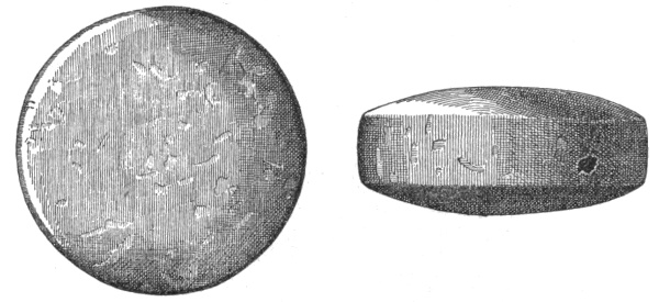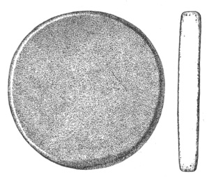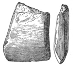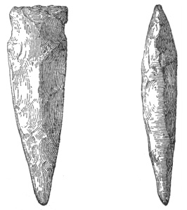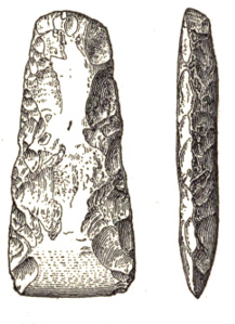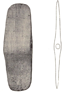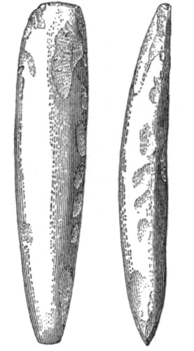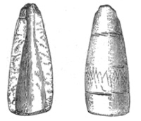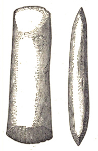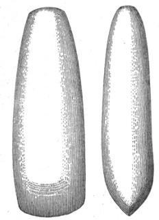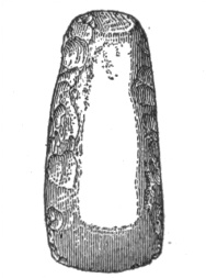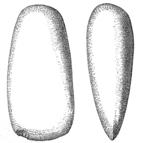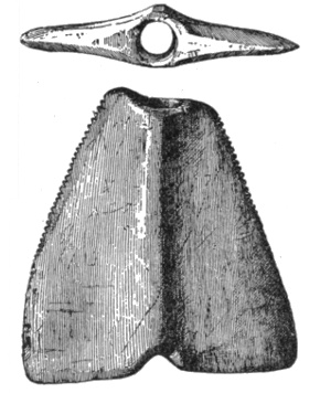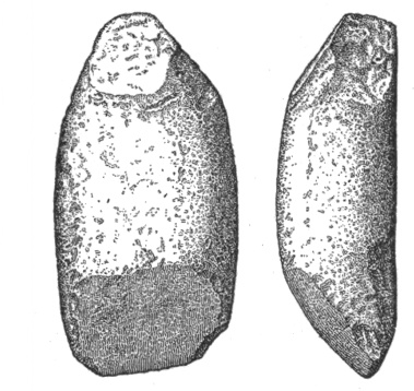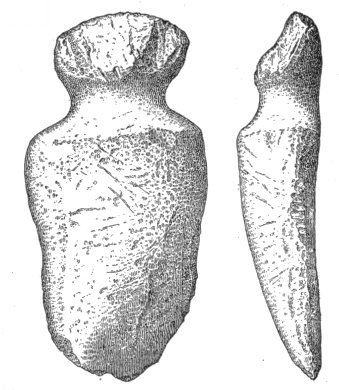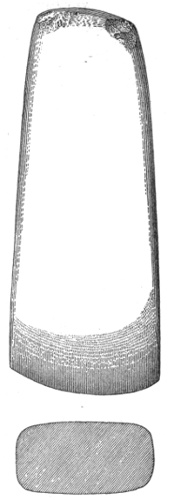 In the eastern and interior states, the grooved axes are far more abundant than the celts of the same size9, because as a rule only the larger implements of this class are grooved. All the ordinary varieties of axes and hatchets are found about Lake Champlain, by far the most abundant being celts, or grooveless axes.10