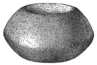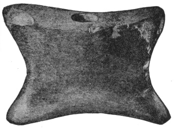 According to Adair and other early observers, the southern Indians had axes of stone, around the grooved heads of which they twisted hickory withes to serve as handles; with these they deadened timber by girdling or cutting through the bark.11 According to travelers of a later generation among the western Indians, similar implements were used on the plains to chop up the vertebræ of buffaloes, which were boiled to obtain the marrow.12