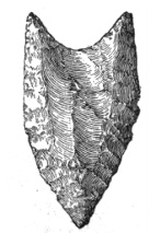 According to Dr. E. B. Tylor, the flint arrows of the Dakota, the Apache, or the Comanche might easily be mistaken for the weapons dug up on the banks of the Thames;1 while cores of flint in Scandinavia and of obsidian in Mexico are exactly alike,2 and a tray filled with European arrowheads can not be distinguished from a tray of American ones.3 Prof. Otis T. Mason observes that the great variety of form in such weapons after they are finished is due partly to nature and partly to the workman’s desire to produce a certain kind of implement. All sorts of pebbles lie at the hand of the savage mechanic, none of them just what he wants. He selects the best.4 Perhaps the truth about the shape is that the savage found it thus and let it so remain.5 59