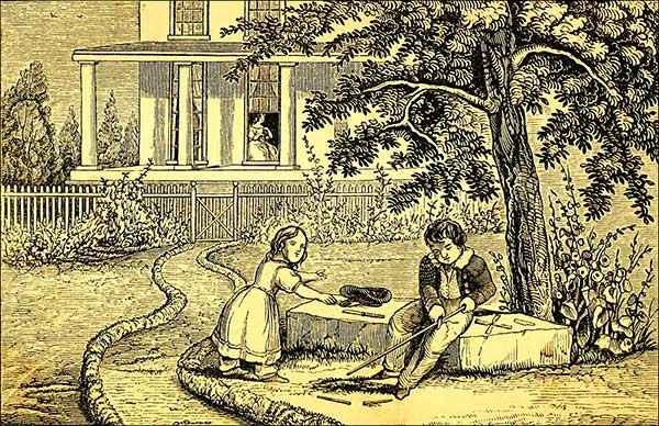 Royal, Lucy’s brother, had been sitting upon10 the steps at the front door, while Lucy was playing school; and just as she was thinking that it was time to dismiss the children, he happened to get up and come into the room. Royal was about eleven years old. When he found that Lucy was playing school, he stopped at the door a moment to listen.