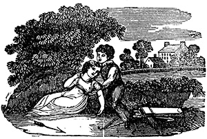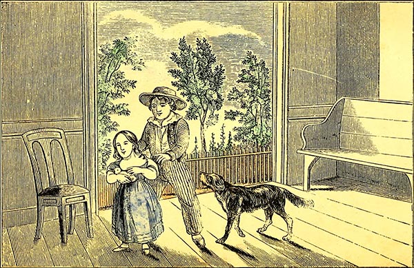 Royal immediately jumped up from the sofa, and ran off,—Lucy in hot pursuit. Royal turned into the back entry, and passed out through an open door behind, which led into a little green12 yard back of the house. There was a young lady, about seventeen years old, coming out of the garden into the little yard, with a watering-pot in her hand, just as Royal and Lucy came out of the house.