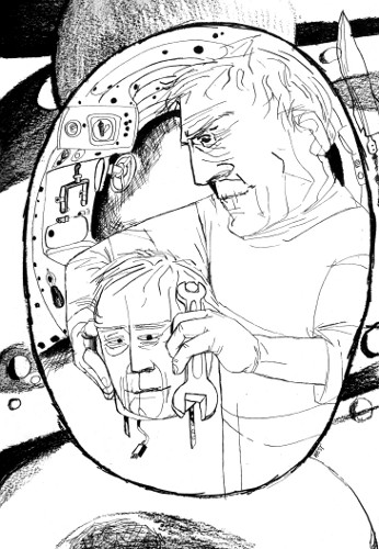 Manet puttered around the spawning monster, trying to brush the copper taste of the station out of his mouth in the mornings, talking to himself, winking at Annie Oakley, and waiting to go mad.